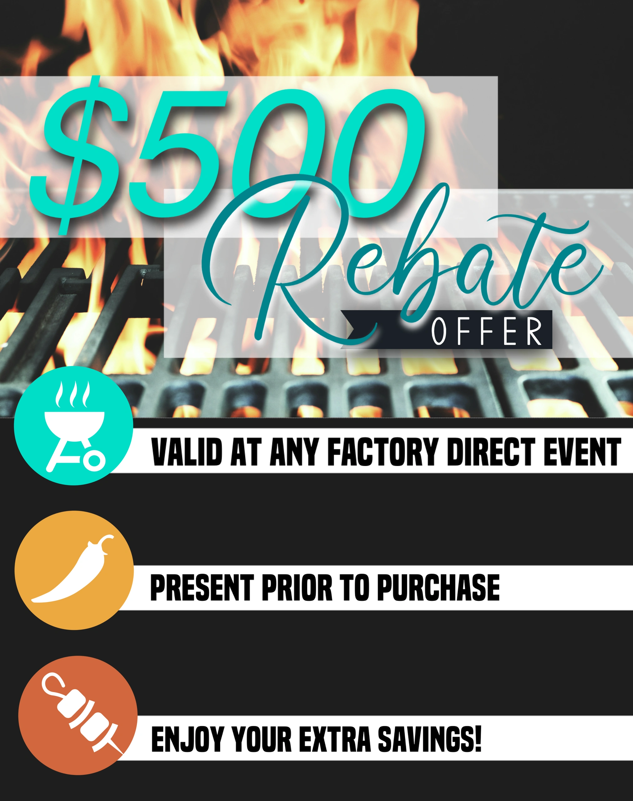 GET AN EXTRA $500 OFF IF YOU VISIT ONE OF OUR FACTORY DIRECT SALES EVENTS!